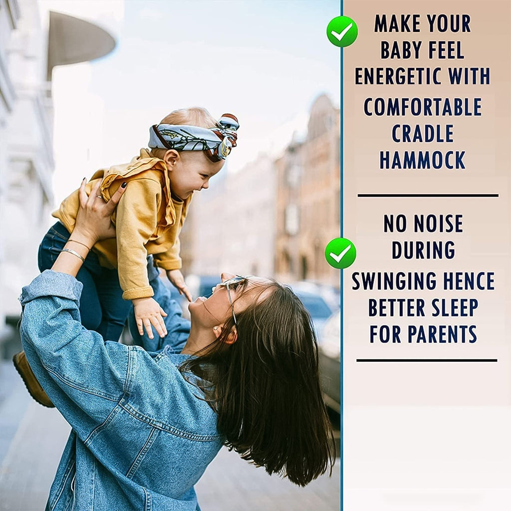 • This baby hammock is made of durable cotton, Soft and Washable Fabric, and Extra Comfort for the Baby. Breathable Net is useful for a Healthy and Airflow Environment. Cradle/Ghodiyu has a mosquito protection net keeping the baby away from mosquitoes and other insects making them sleep comfortably and keep bite free. The baby can enjoy the Swinging.