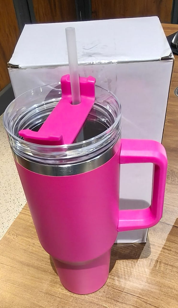 1200 ML Pink Extra Large Insulated Travel Mug with Handle and Straw – Double Wall Thermo Flask Style Tumbler for Hot & Cold Beverages – Spill-Resistant Lid – Portable Steel Mug for Gym, Office, Car & Outdoor Use (1200ML - 1 Pc / Pink Color)